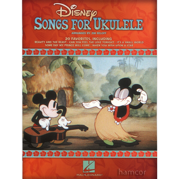 Disney Songs for Ukulele, contains 20 great Disney classics arranged for all Ukulele players. Songs inc, Alice in Wonderland, Give a Little Whistle, When you Wish Upon a Star, Can you Feel the Love Tonight, Heigh Ho, Chim Chim Cher-ee, Some Day my Prince will Come,You ve Got a Friend in Me Beauty and the Beast, Biddidi Bobbidi Boo, Breaking Free, Who s Afraid of the Big Bad Wolf, Zip A Dee Doo Dah, Mickey Mouse March, It s a Small World, A Dream Is a Wish Your Heart Makes, Circle of Life, More