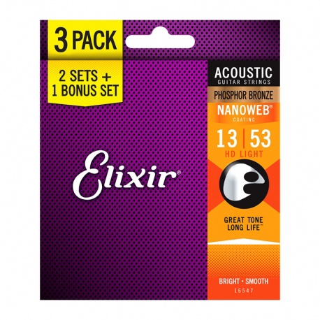 GBPElixir® Strings Acoustic Phosphor Bronze with NANOWEB® Coating deliver distinctive phosphor bronze warmth and sparkle together with extended tone life.