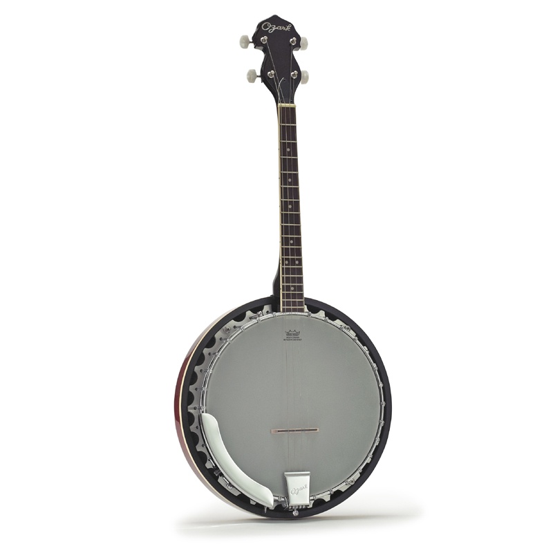 The Ozark 2104TS banjo is a good quality short-scale 4 string tenor banjo. With its 17 fret rosewood fingerboard, this is a great value short-scale banjo for Irish or jazz styles. It is well built with diecast one piece shell and flange and 30 plated brackets for even tension with a single co-ordinator rod. The rim, tailpiece and machine heads have good quality chrome plating, matching the armrest. An 11” diameter Remo ‘weatherking’ head is fitted together with a good quality maple bridge. The detachable resonator has a convex back and is fully bound in ivory colour binding. Scale length: 505mm