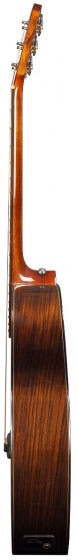 Due to the environment in which it was initially designed to be used, the 'OM' was not a large-bodied guitar. In fact, few of the early 'modern' guitars would be considered large today. So, the 'OM-sized' Rathbone No.2 is not a large bodied guitar either, but the neck joins the body at the 14th fret, so the scale length is one that we would recognise from most modern guitars. When first used, this 'long' scale length was found to help deliver a remarkably, and some may say disproportionately, powerful and dynamic tone. The tuned strings are under greater tension than on shorter scale guitars, so they give a far greater tonal response and 'punch'.