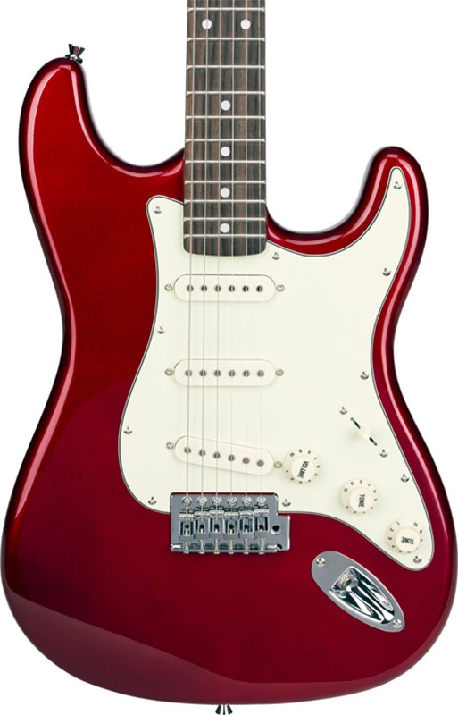 The SX SC style guitar is a great starter electric guitar and comes in a variety of colours. It features a maple neck, rosewood effect fingerboard and quality pickup.